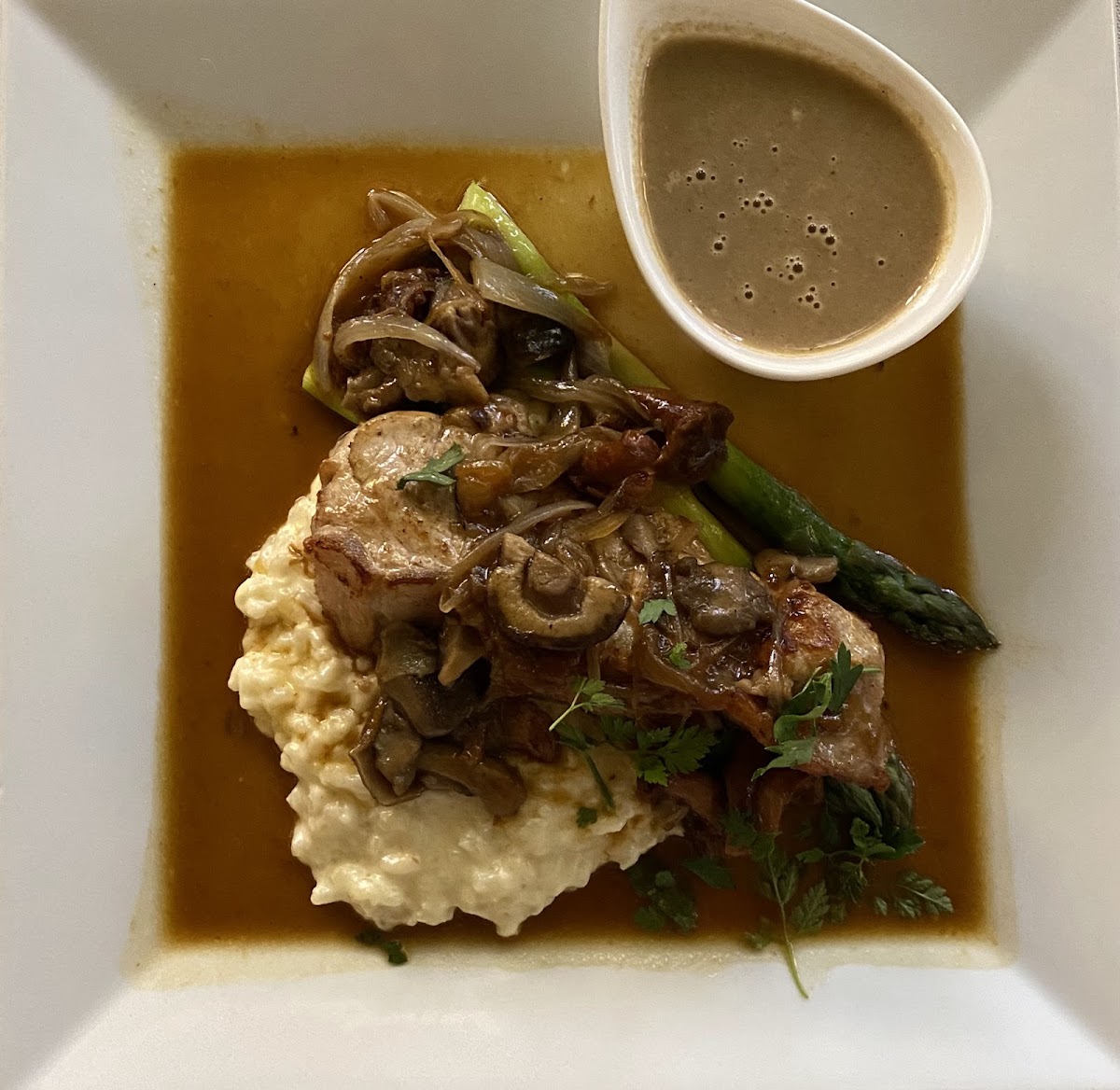 The moment you step inside Auberge De L' Abbaye, the warm, rustic ambiance welcomes you. The space is cozy yet sophisticated, with wooden beams, soft lighting, and a décor that exudes a sense of timelessness. It's the perfect setting for a relaxed evening or a special celebration. The atmosphere is inviting, and the service is always attentive, making it easy to feel right at home.